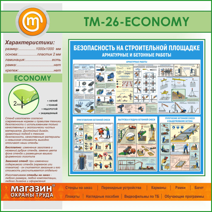 Стенд «Безопасность на строительной площадке. Арматурные и бетонные работы» (TM-26-ECONOMY) в Верее купить