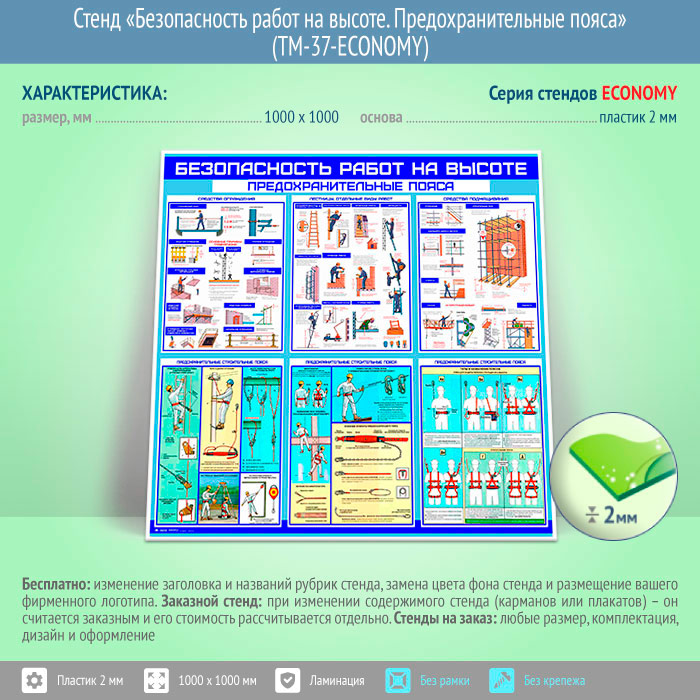 Стенд «Безопасность работ на высоте. Предохранительные пояса» (TM-37-ECONOMY) в Верее купить
