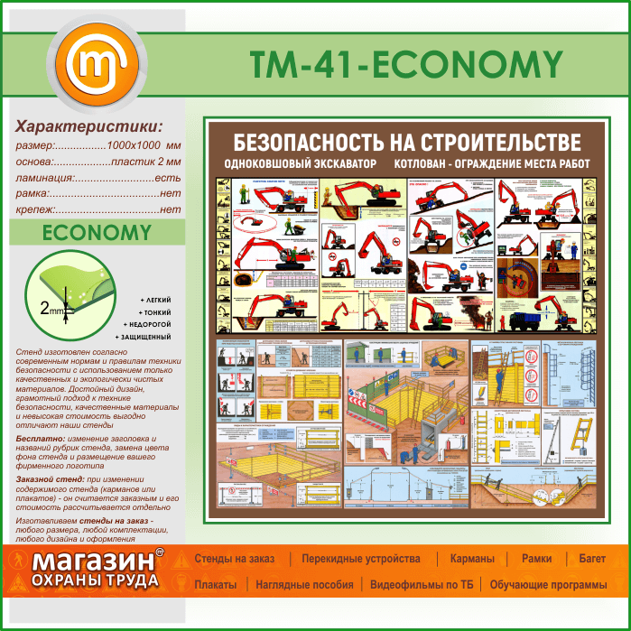 Стенд «Безопасность земляных работ. Экскаватор, котлован» (TM-41-ECONOMY) в Верее купить