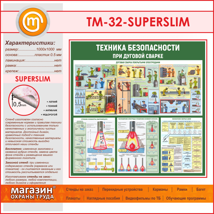 Стенд «Техника безопасности при дуговой сварке» (TM-32-SUPERSLIM) в Верее купить