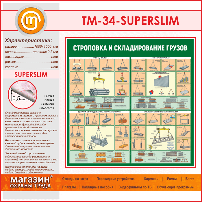 Стенд «Строповка и складирование грузов» (TM-34-SUPERSLIM) в Верее купить