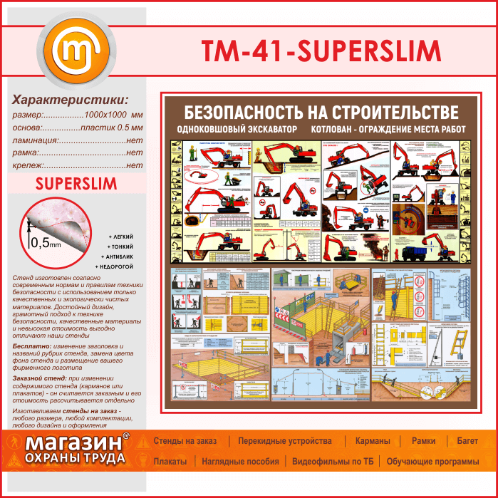 Стенд «Безопасность земляных работ. Экскаватор, котлован» (TM-41-SUPERSLIM) в Верее купить