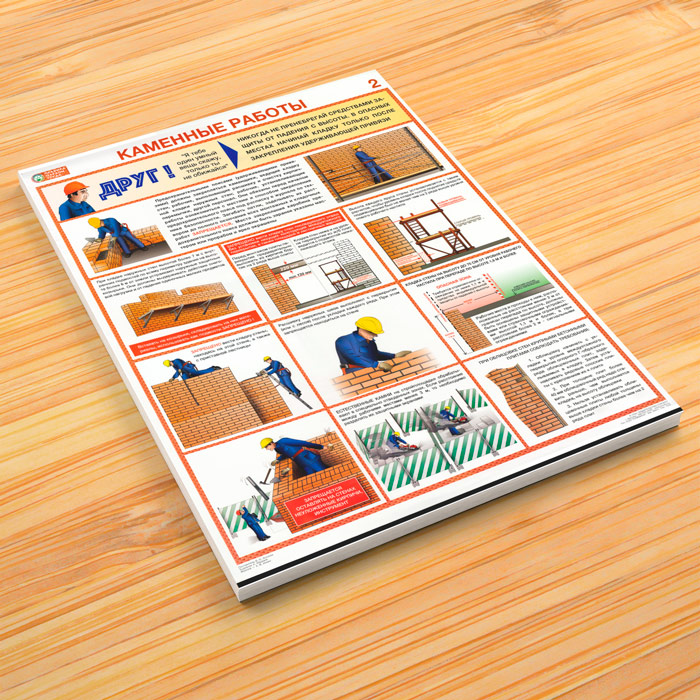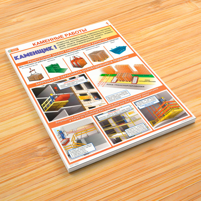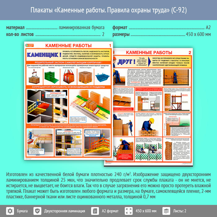 Плакаты «Каменные работы. Правила охраны труда» (С-92, ламинированная бумага, А2, 2 листа) в Верее купить