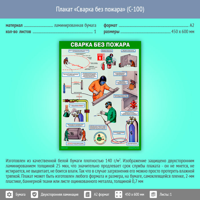 Плакат «Сварка без пожара» (С-100, ламинированная бумага, А2, 1 лист) в Верее купить