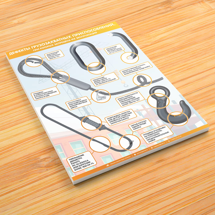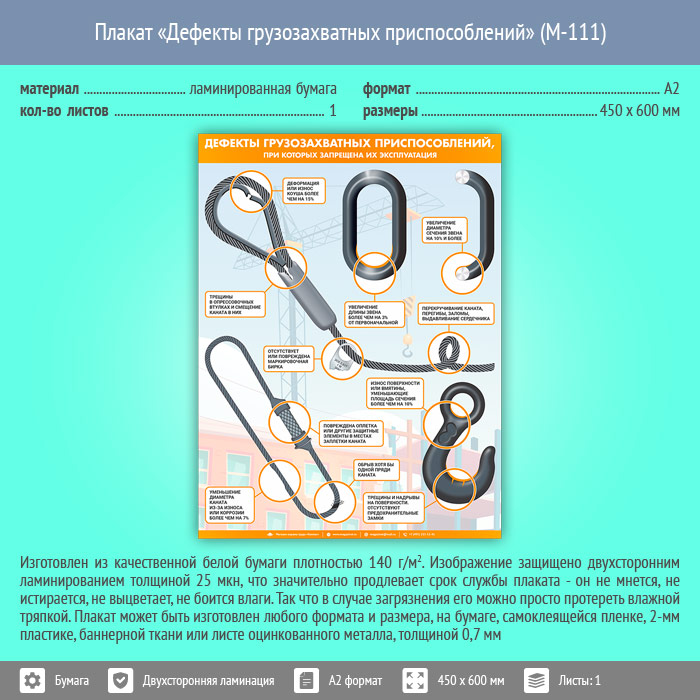 Плакат «Дефекты грузозахватных приспособлений» (М-111, ламинированная бумага, А2, 1 лист) в Верее купить