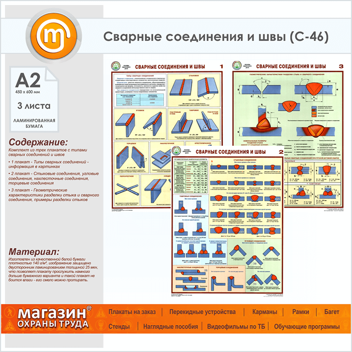 Плакаты «Сварные соединения и швы» (С-46, ламинированная бумага, А2, 3 листа) в Верее купить