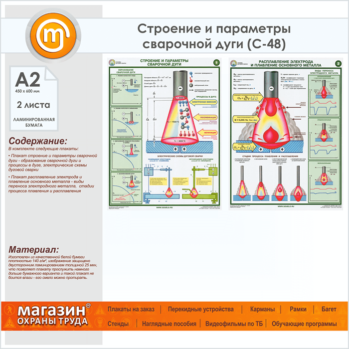 Плакаты «Строение и параметры сварочной дуги» (С-48, ламинированная бумага, А2, 2 листа) в Верее купить