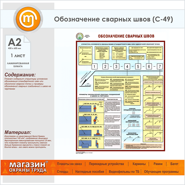 Плакат «Обозначение сварных швов» (С-49, ламинированная бумага, А2, 1 лист) в Верее купить