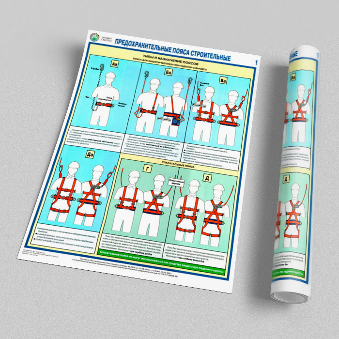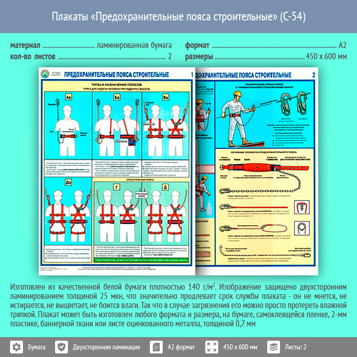 Плакаты «Предохранительные пояса строительные» (С-54, ламинированная бумага, А2, 2 листа) в Верее купить