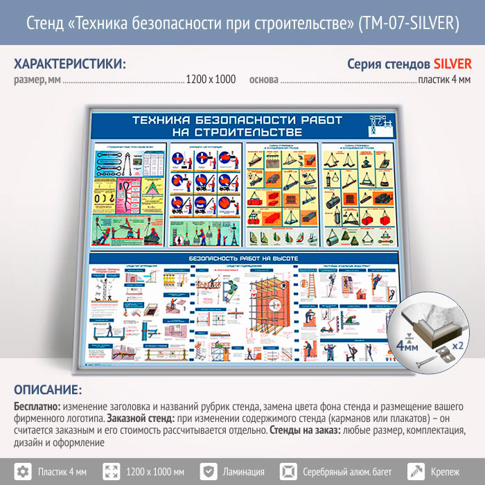 Стенд «Техника безопасности при строительстве» (TM-07-SILVER) в Верее купить