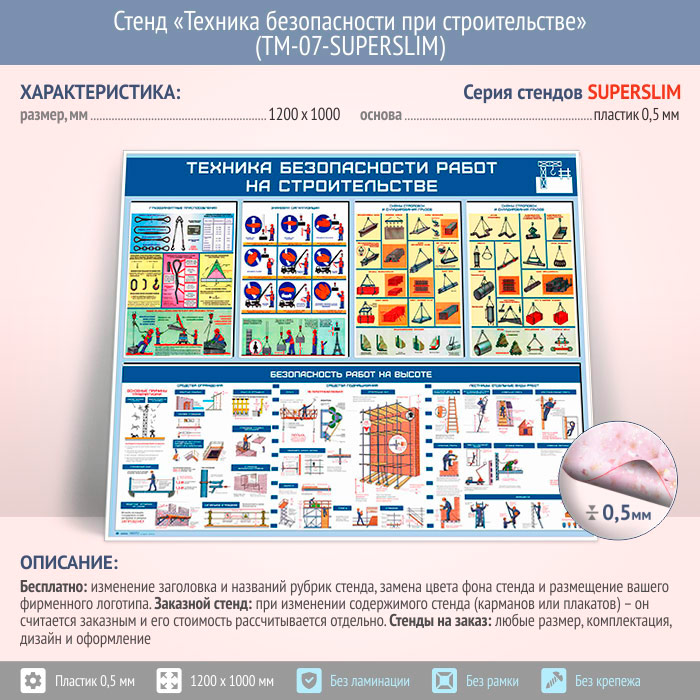 Стенд «Техника безопасности при строительстве» (TM-07-SUPERSLIM) в Верее купить