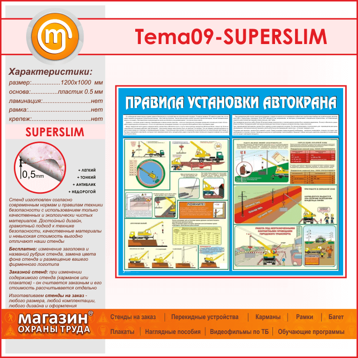 Стенд «Правила установки автокранов» (TM-09-SUPERSLIM) в Верее купить
