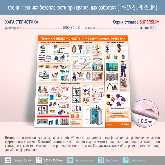 Стенд «Техника безопасности при сварочных работах» (TM-19-SUPERSLIM) в Верее купить