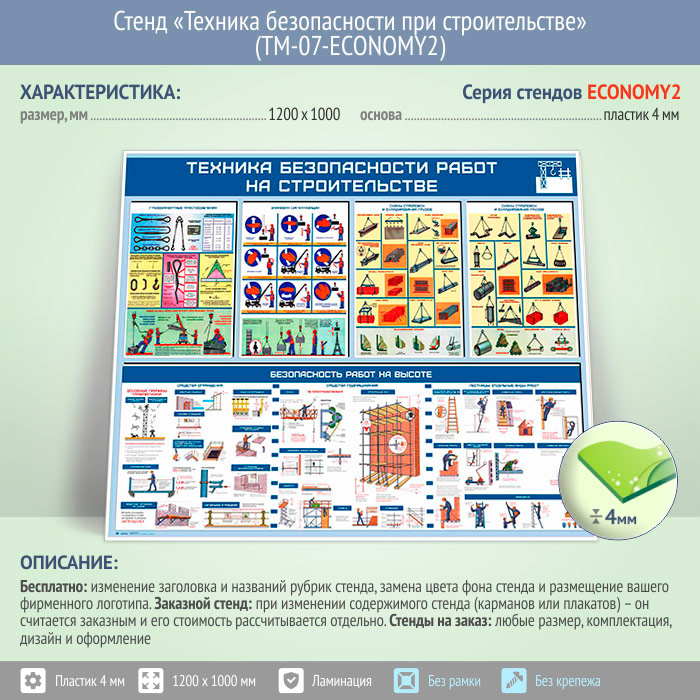 Стенд «Техника безопасности при строительстве» (TM-07-ECONOMY2) в Верее купить