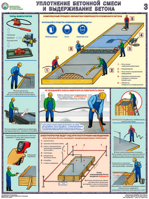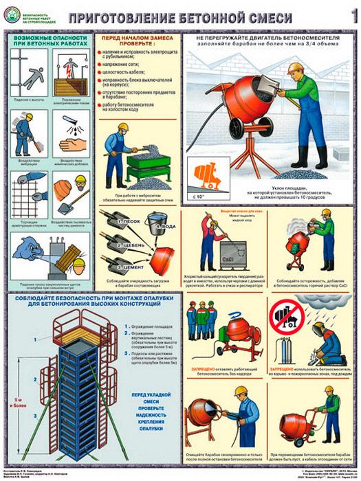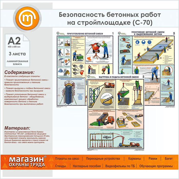 Плакаты «Безопасность бетонных работ на стройплощадке» (С-70, ламинированная бумага, А2, 3 листа) в Верее купить