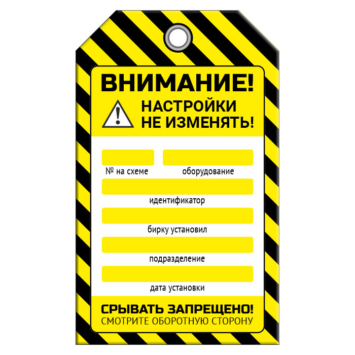 Бирка «НАСТРОЙКИ НЕ ИЗМЕНЯТЬ!» (1 шт., двусторонняя, пластик, 70х115 мм) в Верее купить