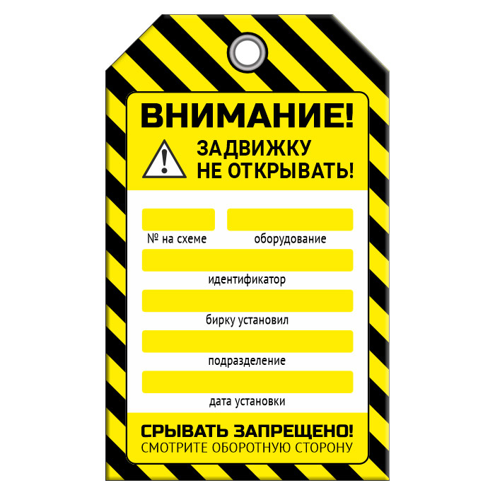 Бирка «ЗАДВИЖКУ НЕ ОТКРЫВАТЬ!» (1 шт., двусторонняя, пластик, 70х115 мм) в Верее купить
