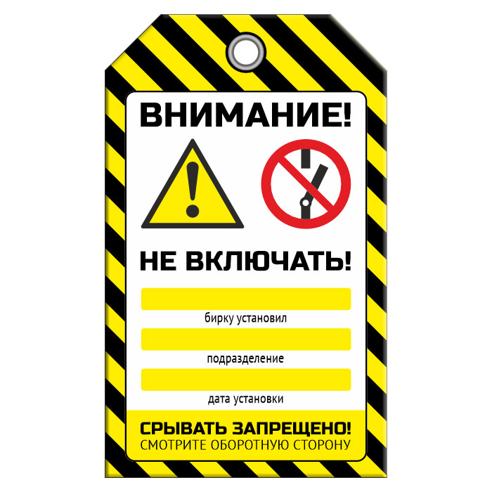Бирка «НЕ ВКЛЮЧАТЬ!», 2-й вариант (1 шт., двусторонняя, пластик, 70х115 мм) в Верее купить