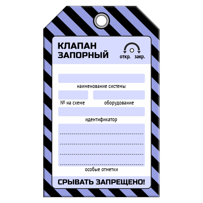 Бирка «КЛАПАН ЗАПОРНЫЙ» (1 шт., односторонняя, пластик, 70х115 мм) в Верее купить