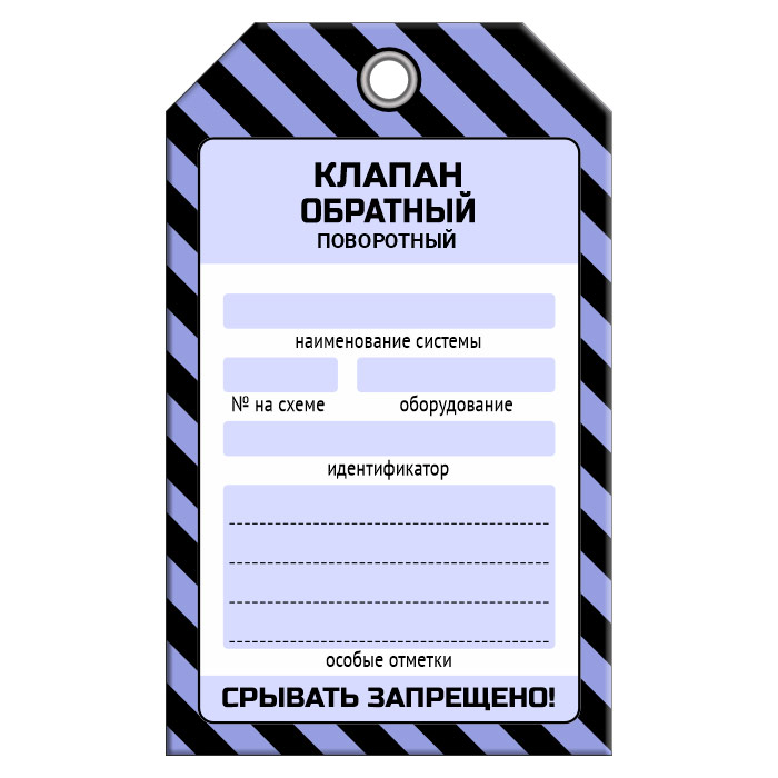 Бирка «КЛАПАН ОБРАТНЫЙ ПОВОРОТНЫЙ» (1 шт., односторонняя, пластик, 70х115 мм) в Верее купить