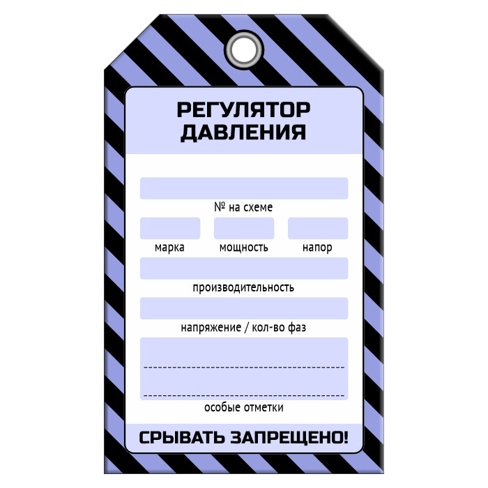 Бирка «РЕГУЛЯТОР ДАВЛЕНИЯ» (1 шт., односторонняя, пластик, 70х115 мм) в Верее купить