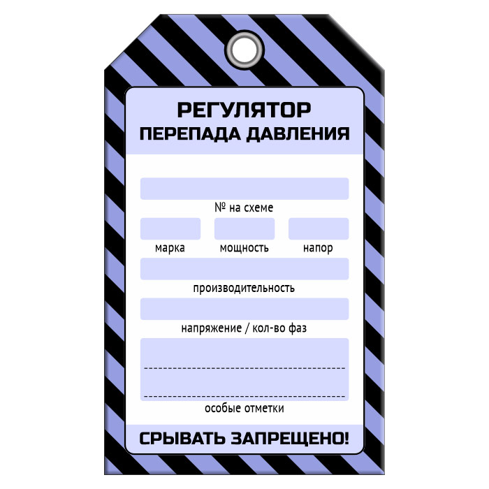 Бирка «РЕГУЛЯТОР ПЕРЕПАДА ДАВЛЕНИЯ» (1 шт., односторонняя, пластик, 70х115 мм) в Верее купить