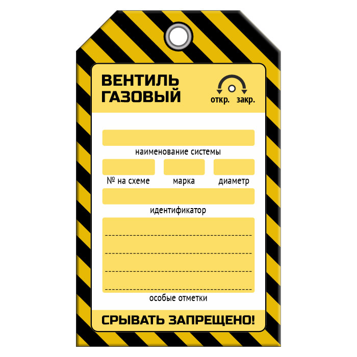 Бирка «ВЕНТИЛЬ ГАЗОВЫЙ» (1 шт., односторонняя, пластик, 70х115 мм) в Верее купить