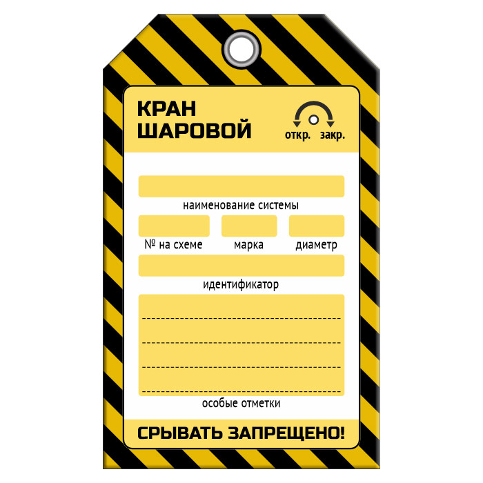 Бирка «КРАН ШАРОВОЙ» для газопровода (1 шт., односторонняя, пластик, 70х115 мм) в Верее купить