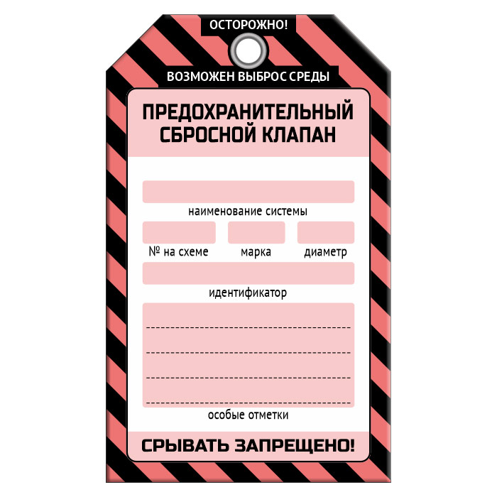 Бирка «ПРЕДОХРАНИТЕЛЬНЫЙ СБРОСНОЙ КЛАПАН» (1 шт., односторонняя, пластик, 70х115 мм) в Верее купить