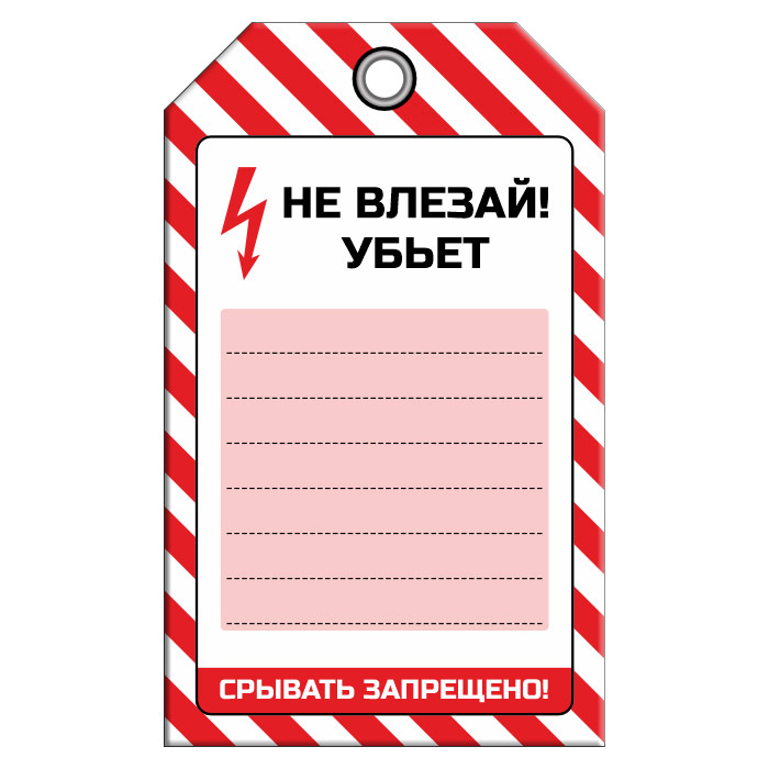 Бирка «НЕ ВЛЕЗАЙ! УБЪЕТ» (1 шт., односторонняя, пластик, 70х115 мм) в Верее купить