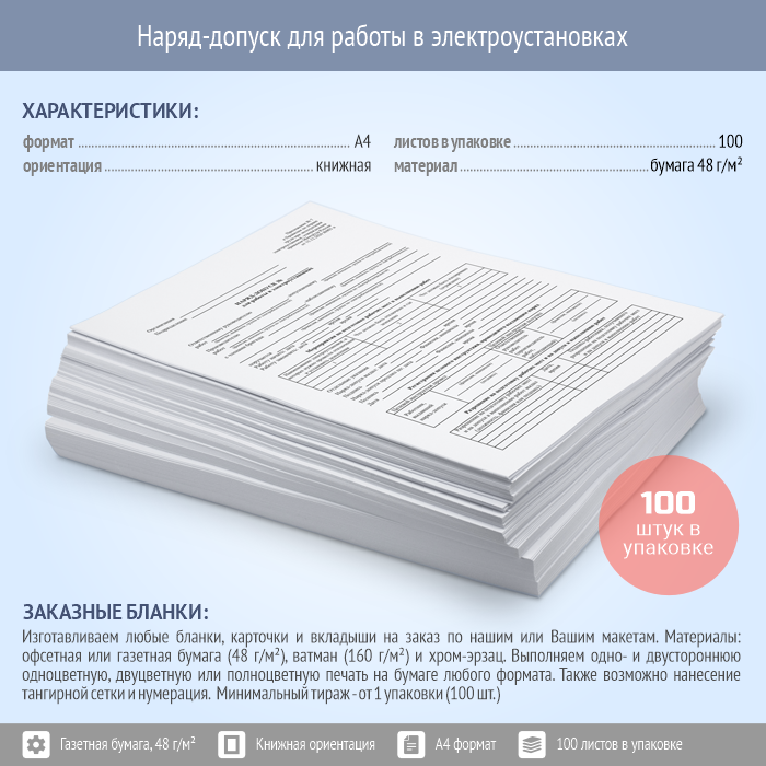 Наряд-допуск для работы в электроустановках (упаковка из 100 штук) в Верее купить