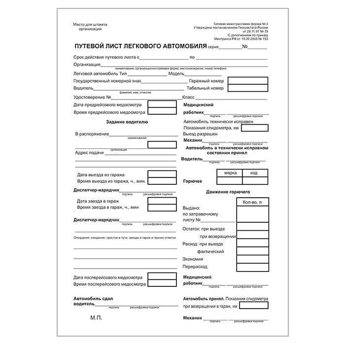 Путевой лист легкового автомобиля (форма № 3, упаковка из 100 штук) в Верее купить