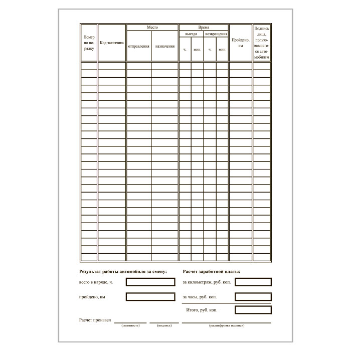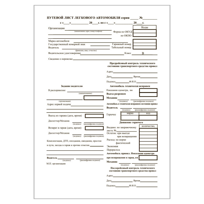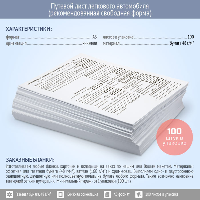 Путевой лист легкового автомобиля (рекомендованная свободная форма, упаковка из 100 штук) в Верее купить