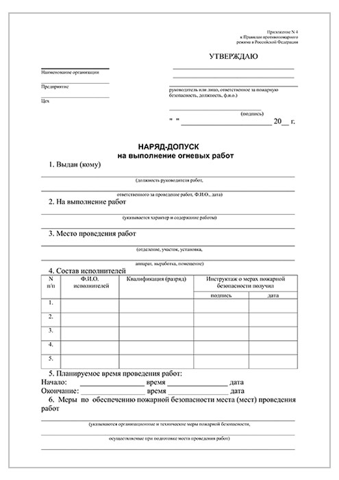 Наряд-допуск на выполнение огневых работ (упаковка из 100 штук) в Верее купить
