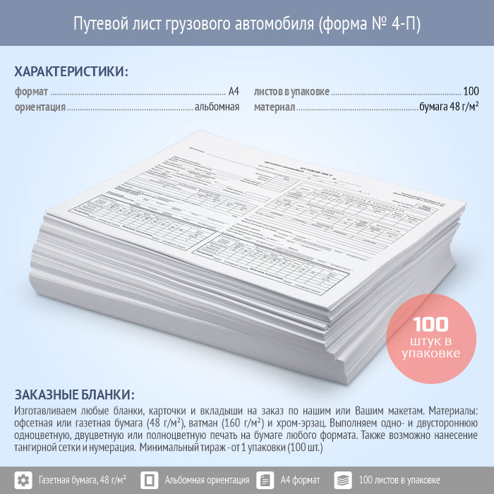 Путевой лист грузового автомобиля (форма № 4-П, упаковка из 100 штук) в Верее купить