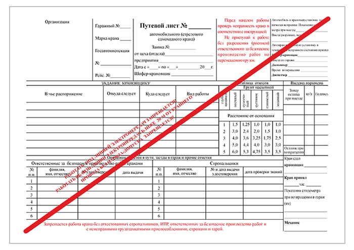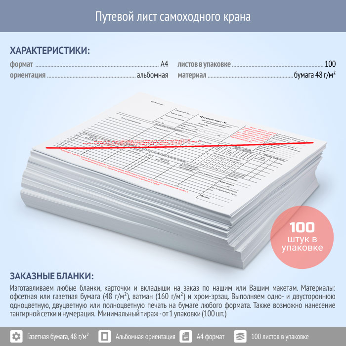 Путевой лист самоходного крана (упаковка из 100 штук) в Верее купить