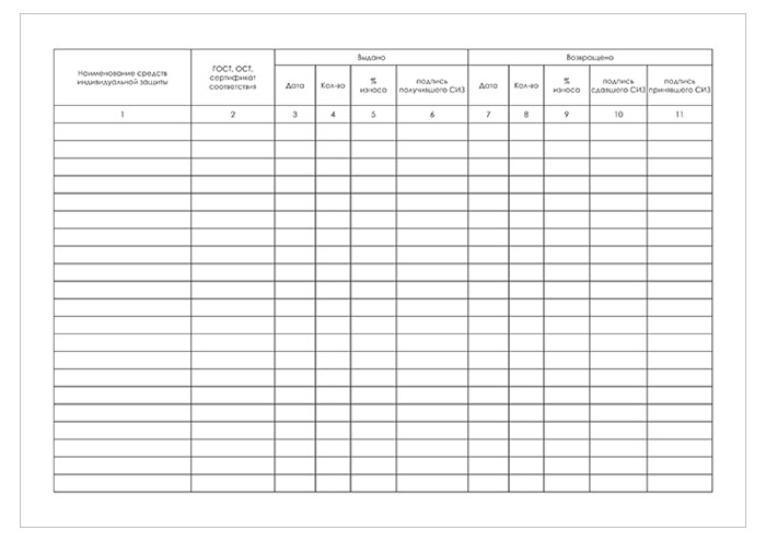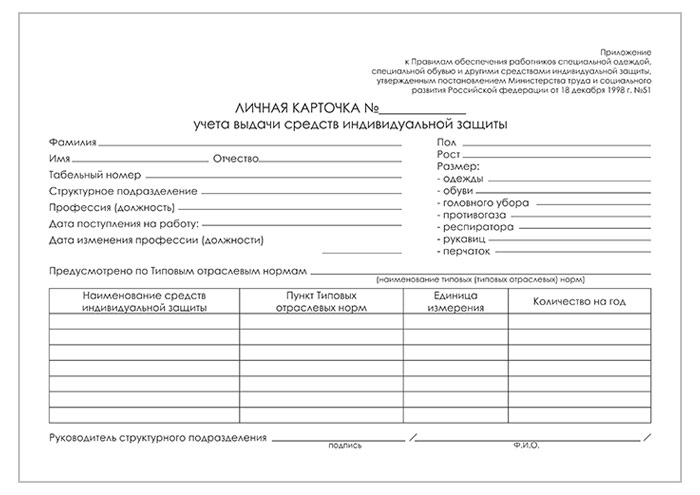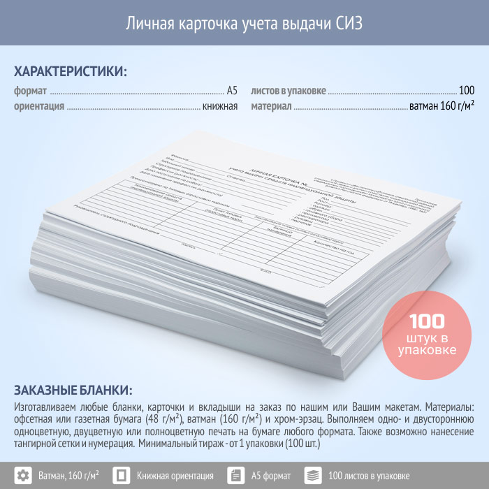 Карточка выдачи СИЗ (приказ Минздравсоцразвития от 01.06.2009 г. №290н, упаковка 100 штук) в Верее купить