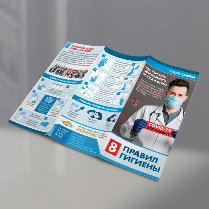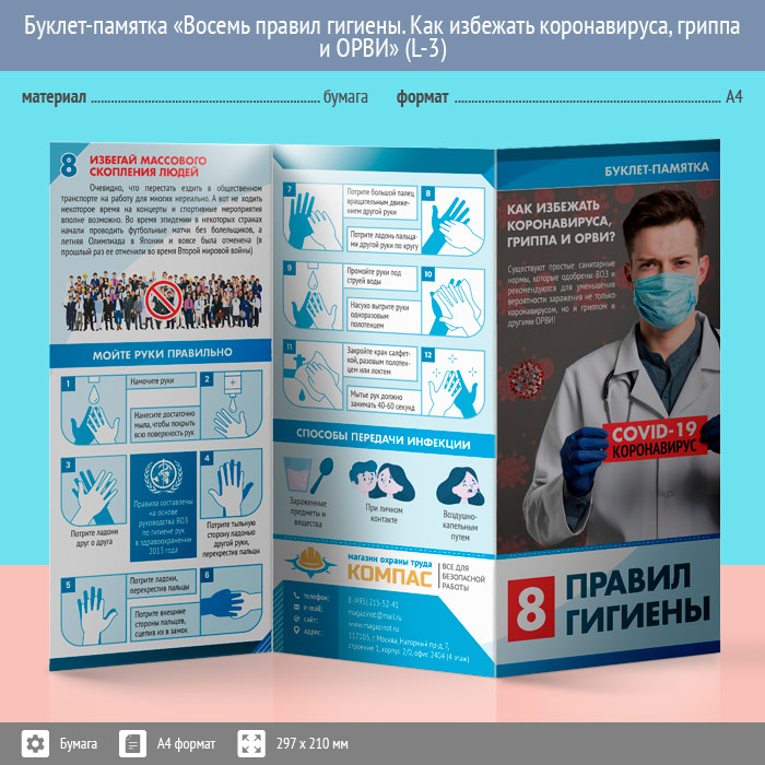 Буклет-памятка «Восемь правил гигиены. Как избежать коронавируса, гриппа и ОРВИ» (L-3) в Верее купить