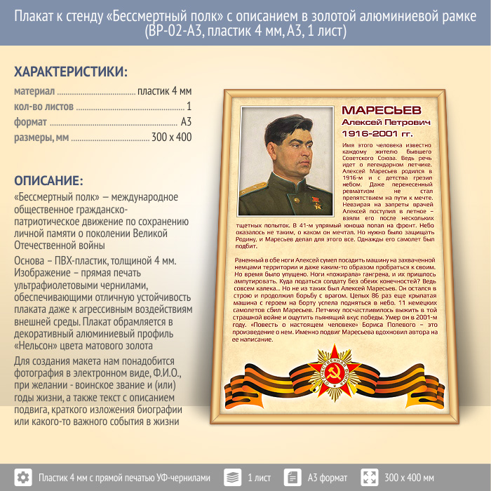Плакат к стенду «Бессмертный полк» с описанием в золотой (матовой) алюминиевой рамке (BP-02-A3, пластик 4 мм, А3, 1 лист) в Верее купить