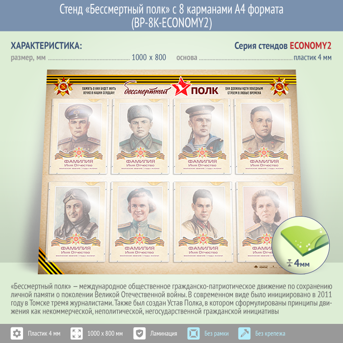 Стенд «Бессмертный полк» с 8 карманами А4 формата (BP-8K-ECONOMY2) в Верее купить