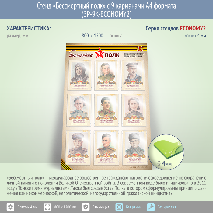 Стенд «Бессмертный полк» с 9 карманами А4 формата (BP-9K-ECONOMY2) в Верее купить