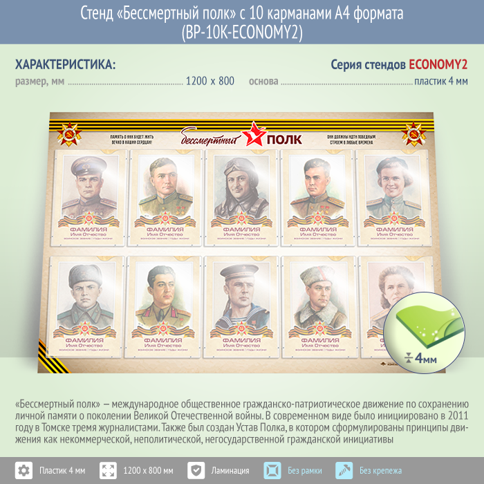 Стенд «Бессмертный полк» с 10 карманами А4 формата (BP-10K-ECONOMY2) в Верее купить