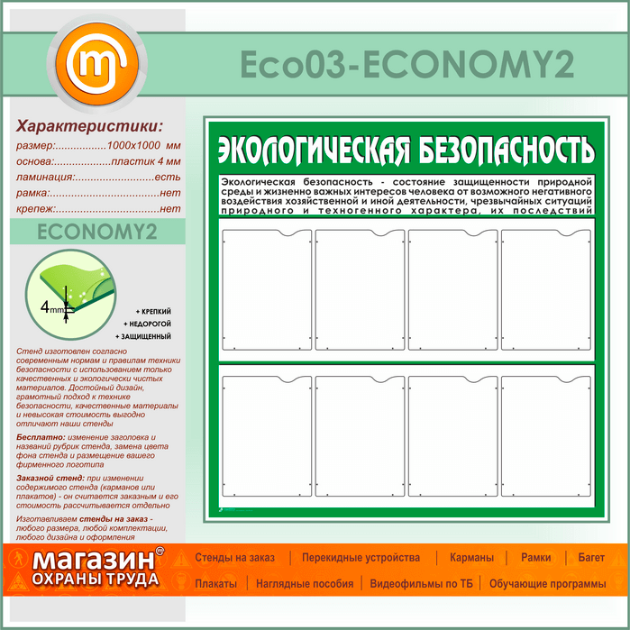 Стенд «Экологическая безопасность» с 8 карманами (ECO-03-ECONOMY2) в Верее купить