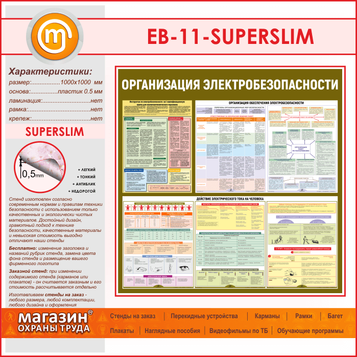Стенд «Организация электробезопасности» (EB-11-SUPERSLIM) в Верее купить
