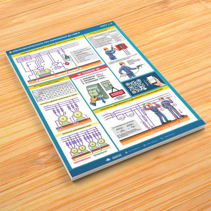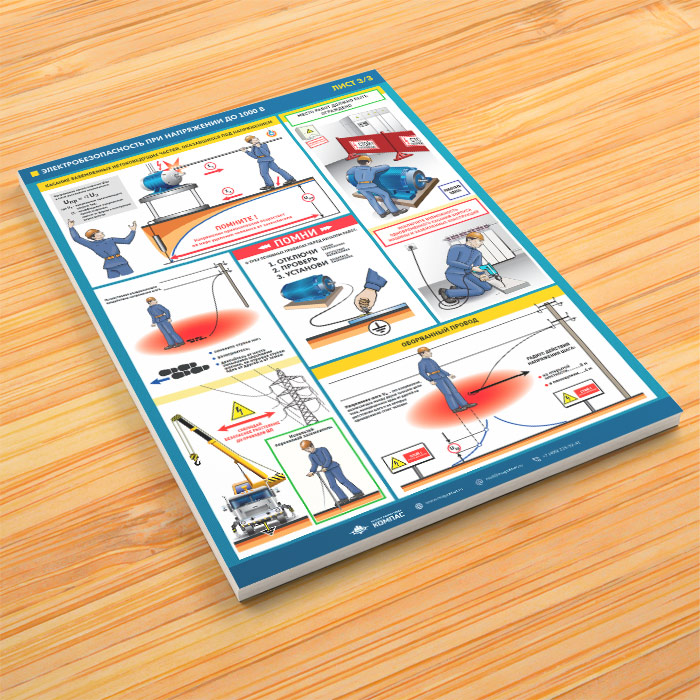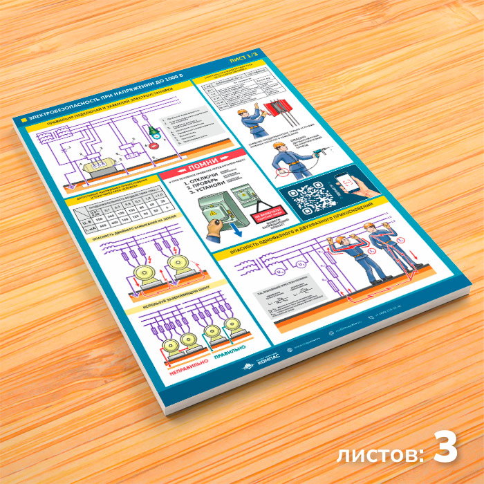 Плакаты «Электробезопасность при напряжении до 1000В» (М-64, ламинированная бумага, А2, 3 листа) в Верее купить