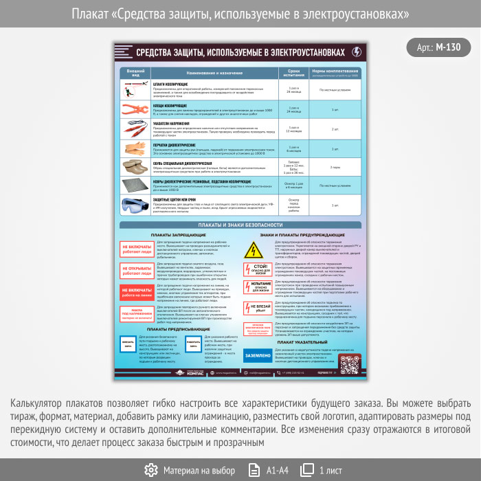 Плакат «Средства защиты, используемые в электроустановках» с QR (М-130, 1 лист) в Верее купить