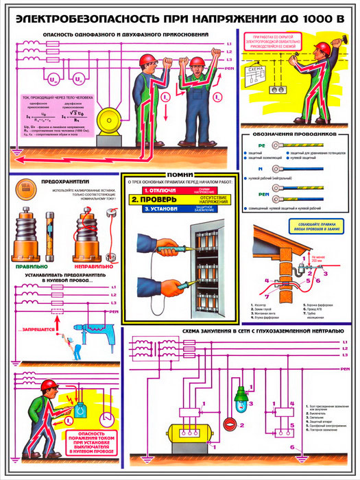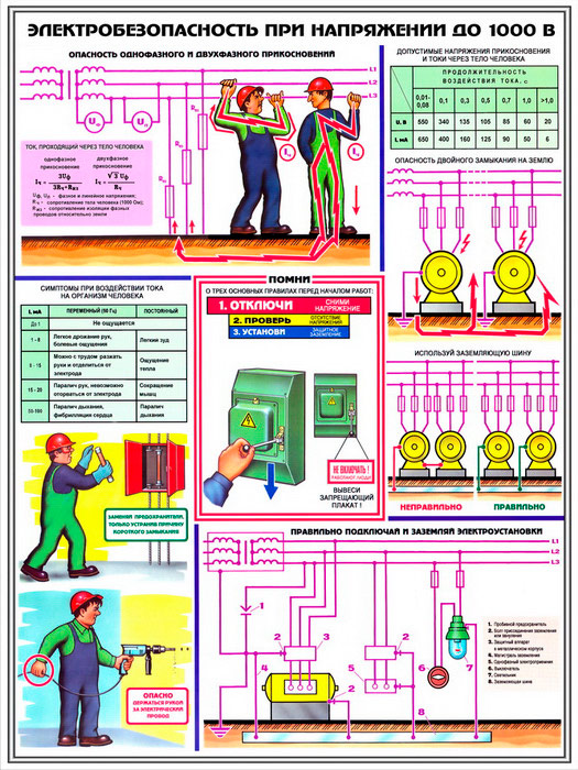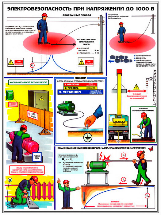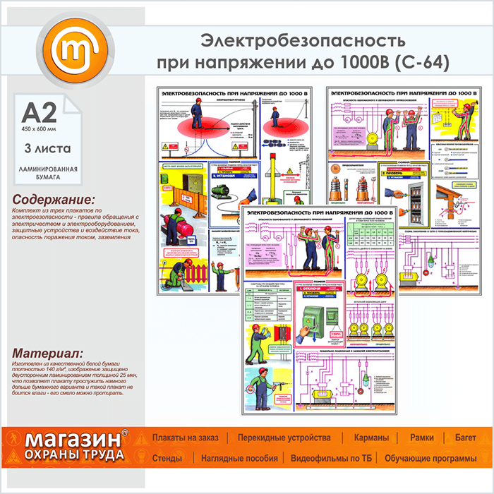 Плакаты «Электробезопасность при напряжении до 1000В» (С-64, ламинированная бумага, А2, 3 листа) в Верее купить
