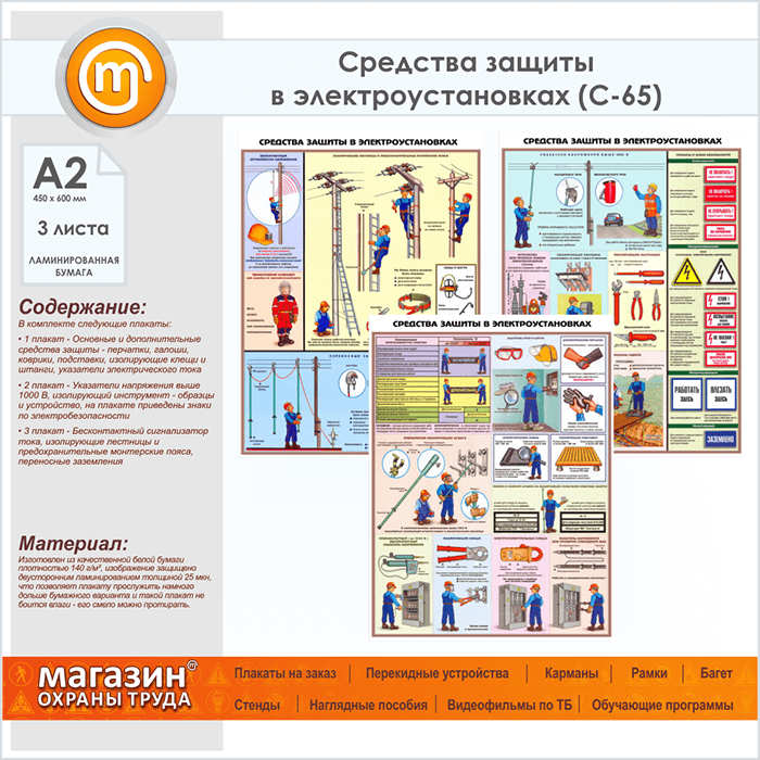 Плакаты «Средства защиты в электроустановках» (С-65, ламинированная бумага, А2, 3 листа) в Верее купить