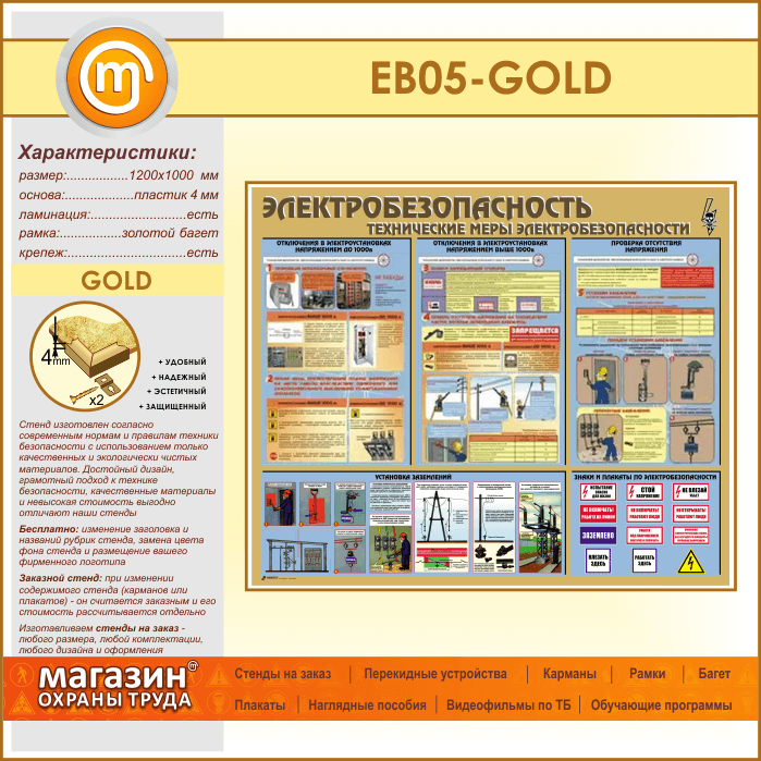 Стенд «Электробезопасность. Технические меры электробезопасности» (EB-05-GOLD) в Верее купить