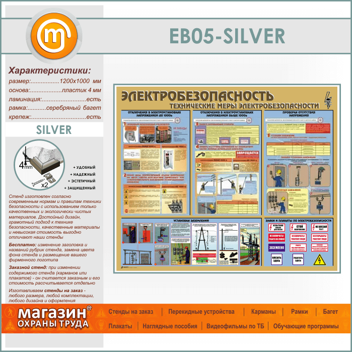 Стенд «Электробезопасность. Технические меры электробезопасности» (EB-05-SILVER) в Верее купить